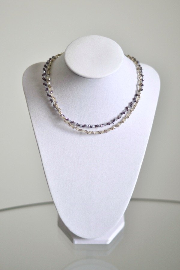 Dúo de collares de cristal con terminaciones en acero quirúrgico hipoalergénico.